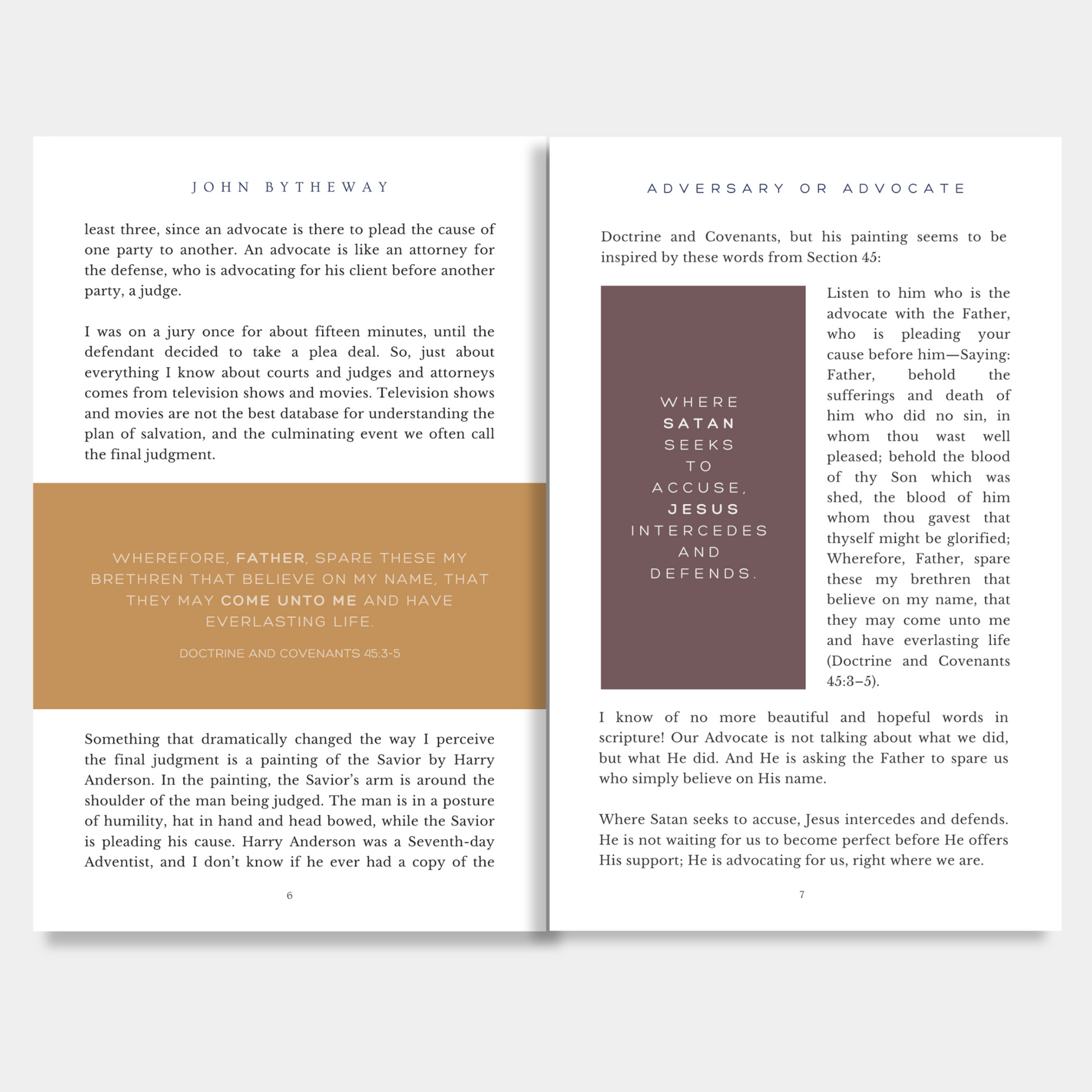 When we obsess over our mistakes or focus on others' faults, we take on the role of the accuser. The Savior, on the other hand, asks us to show compassion–to extend grace and be an advocate to others and to ourselves.
