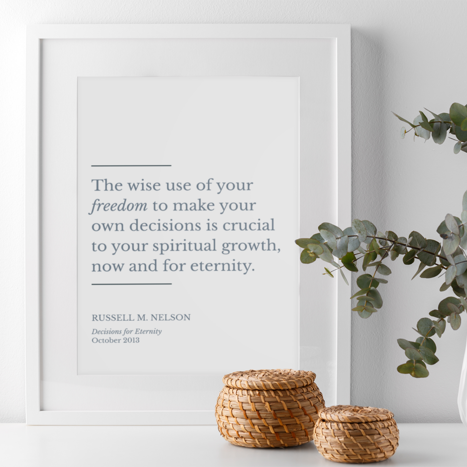 This inspiring printable features a powerful quote by President Russell M. Nelson. Designed to uplift and encourage thoughtful decision-making, it’s perfect for personal study, youth lessons, or as a daily reminder of the importance of agency.