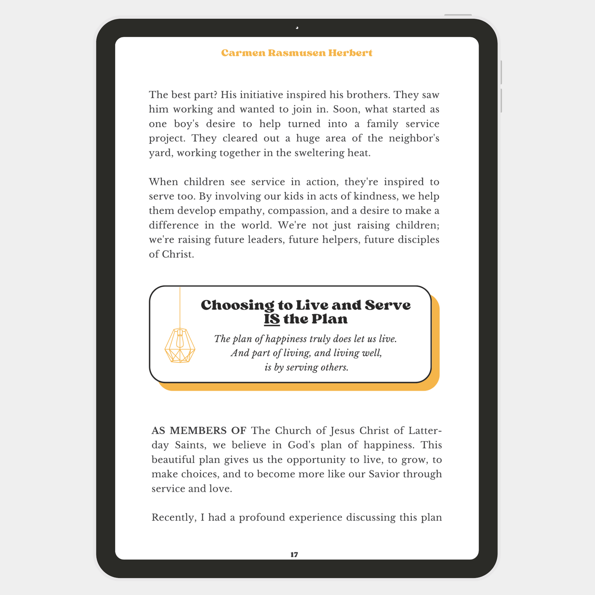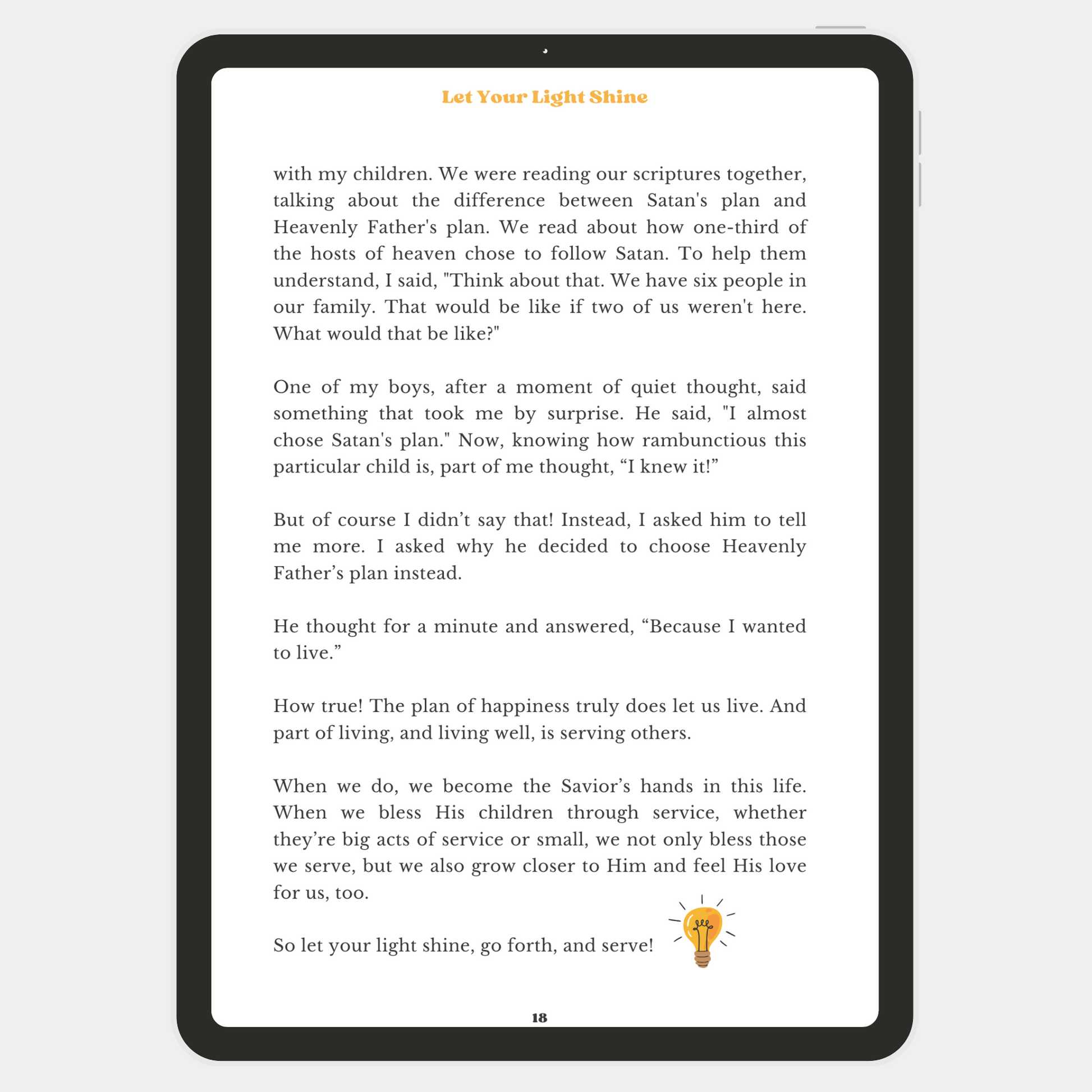Heavenly Father often uses us to help other people feel His love. We can be like His hands on Earth, doing good things for others. It's a beautiful responsibility and privilege. The Lord needs our small acts of kindness wherever we are. Like dropping a pebble in a pond, the ripples of our kind actions can spread far beyond what we can see. The world is waiting for your light. Shine bright, and watch how the Lord magnifies your efforts beyond anything you could imagine.