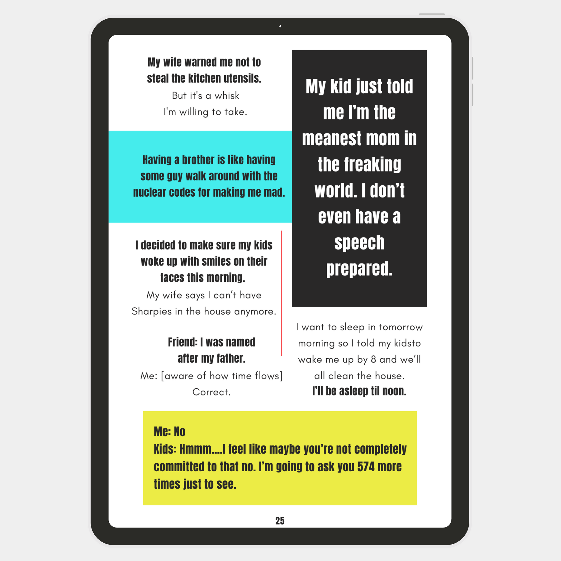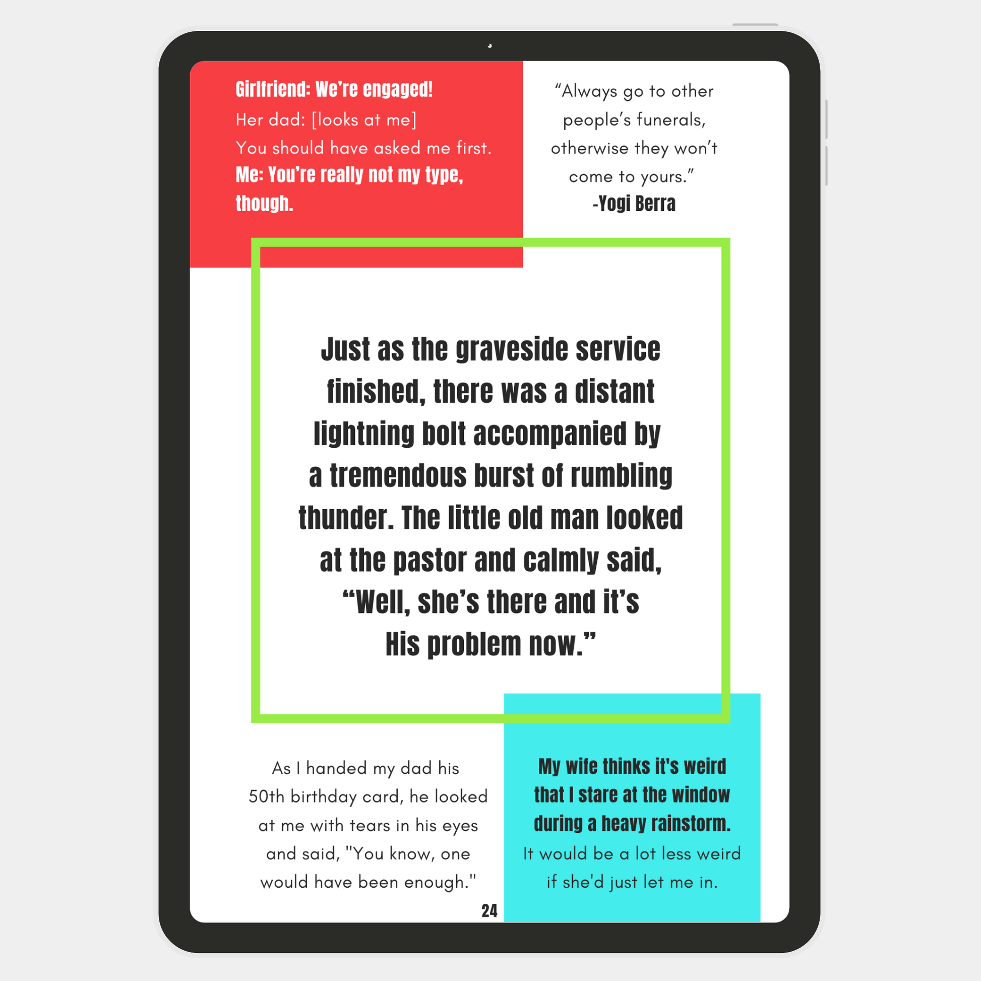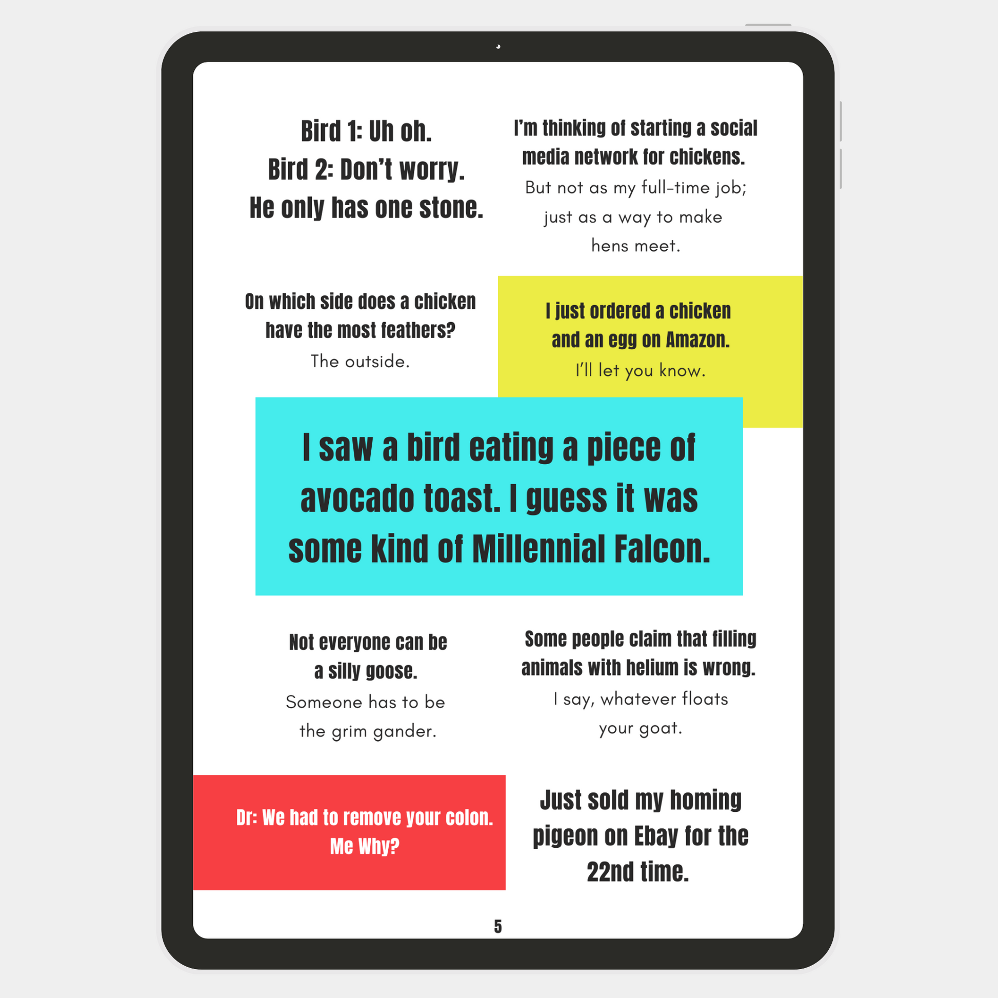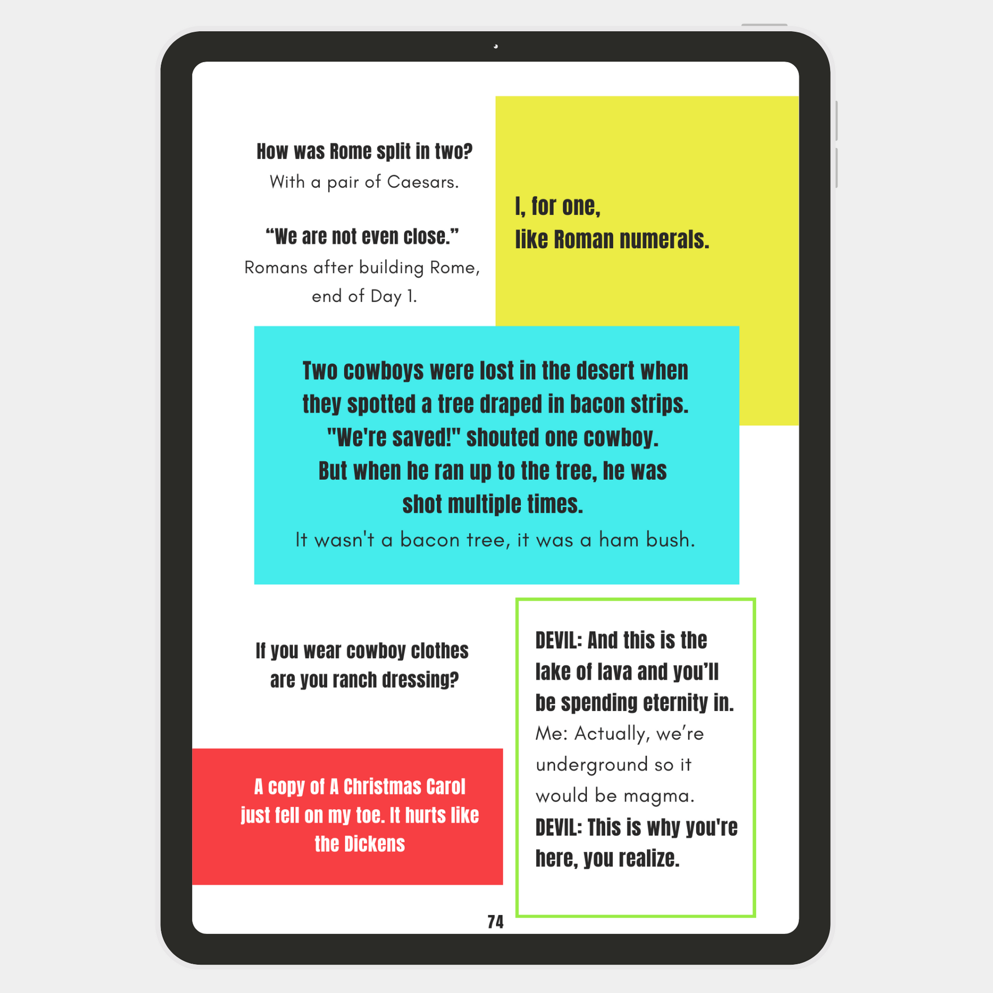 We've scoured their talk archives to bring you 500+ quirky jokes and punny anecdotes that are sure to tickle your funny bone. From side-splitting riddles to wholesome (yet hilarious) pick-up lines, The Joke Book is sure to become your go-to source for spontaneous Christian fun and family-friendly entertainment.
